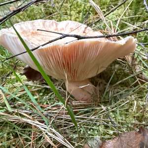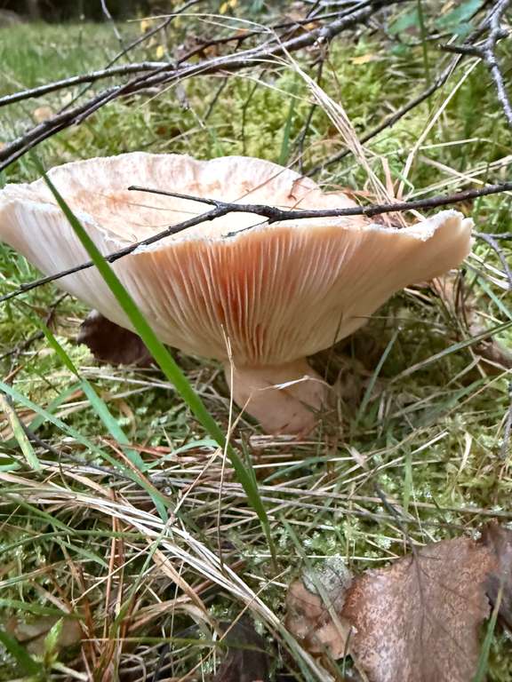 Würde eher sagen Richtung Lactarius torminosus oder pubescens (beachte: Birkenblätter und -äste sind auf dem Foto zu sehen..)