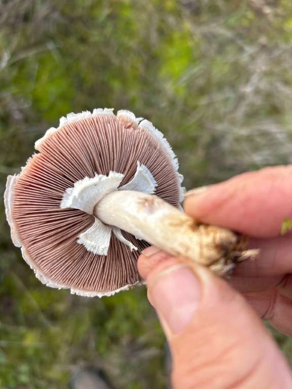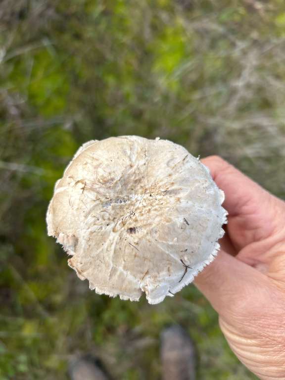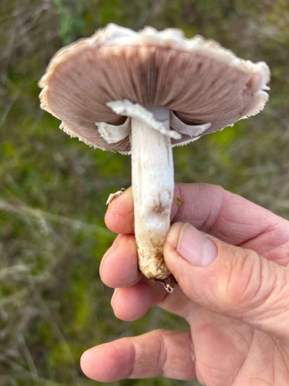 Also, es ist ein Champignon. Aber welcher genau weiß ich nich zu 100%. Könnte ein Wiesenchampignon sein. Scheint schon älter zu sein da er ganz geöffnet ist und in der Hutmitte im schnitt schon etwas wässrig erscheint. Aber ich bin kein Fachmann sondern Hobbysammler.