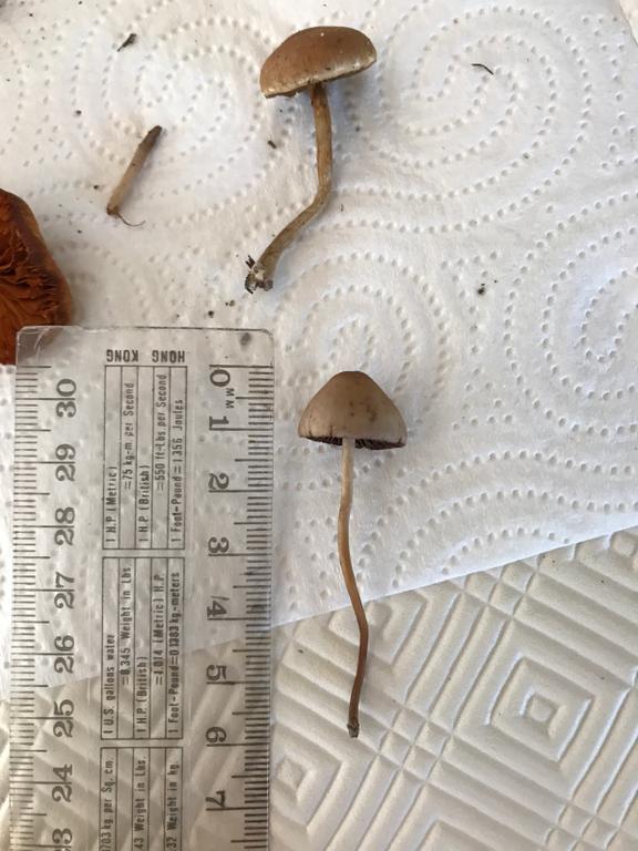 Two different species. The lower one ist Panaeolona foenisecii.