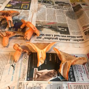 Die schnelle Verfärbung nach Weinrot an den Schnittstellen passt nicht für den Edelreizker! Falls Weißtannen in der Nähe standen vielleicht Lachsreizker. Unter Fichten dann doch Fichtenreizker!