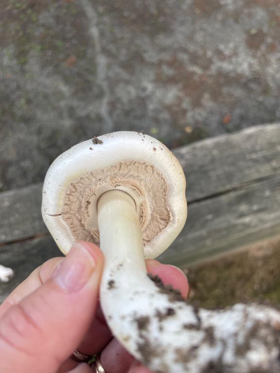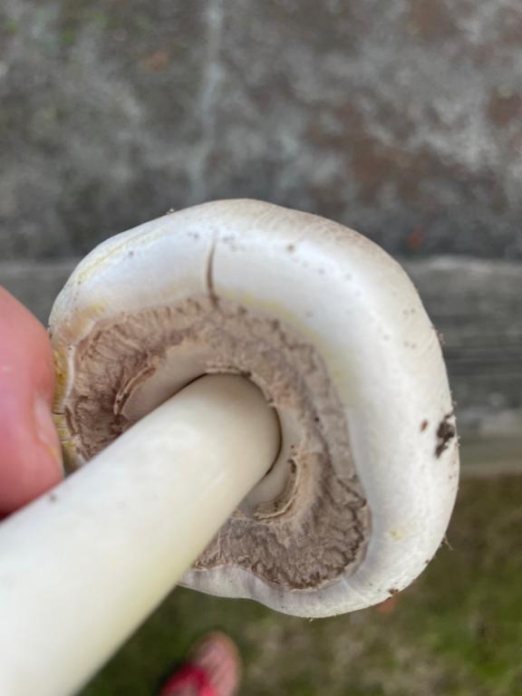 Ohne Schnittbild schnell gilbenden Stielbasis nicht als Giftchampignon zu bestimmen. Kann auch sehr gut ein Anischampignon sein. Das zarte Gilben des Hutes deutet darauf hin. Der Geruch wäre entscheidend.