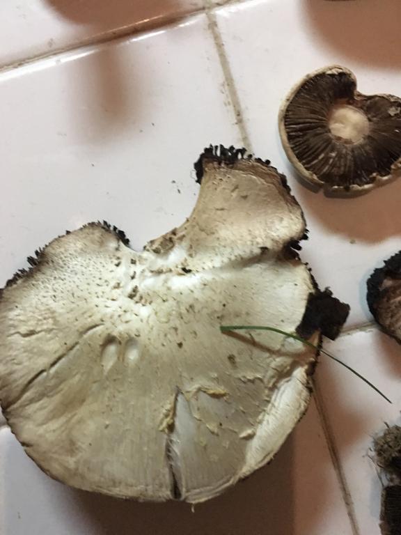 Alte Champignons, Agaricus spec., aufgrund des Alters vielleicht unbekömmlich. Besser noch einmal jüngere Exemplare posten.