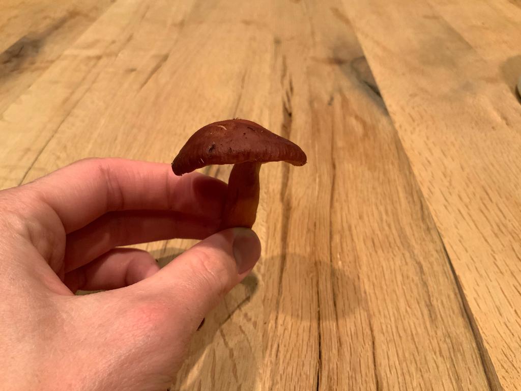 Würde ich auch sagen , wahrscheinlich Lactarius camphoratus ( Kampfer-Milchling)wegen der grubigen Hutoberfläche , aber schwer zu sagen ungewöhnlich gewachsen 😉