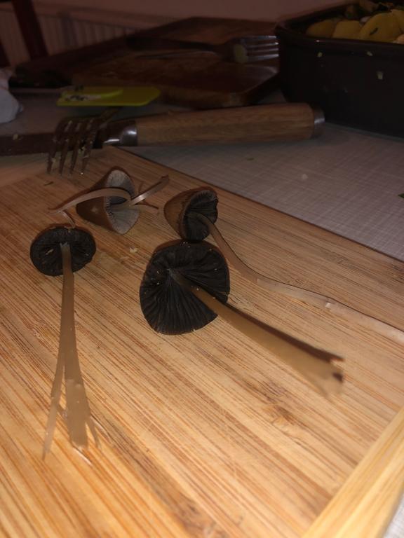 Die Lamellen sind auch nicht scheckig, was für Panaeoline foenisecii typisch wäre! Daher: Psathyrella spec.