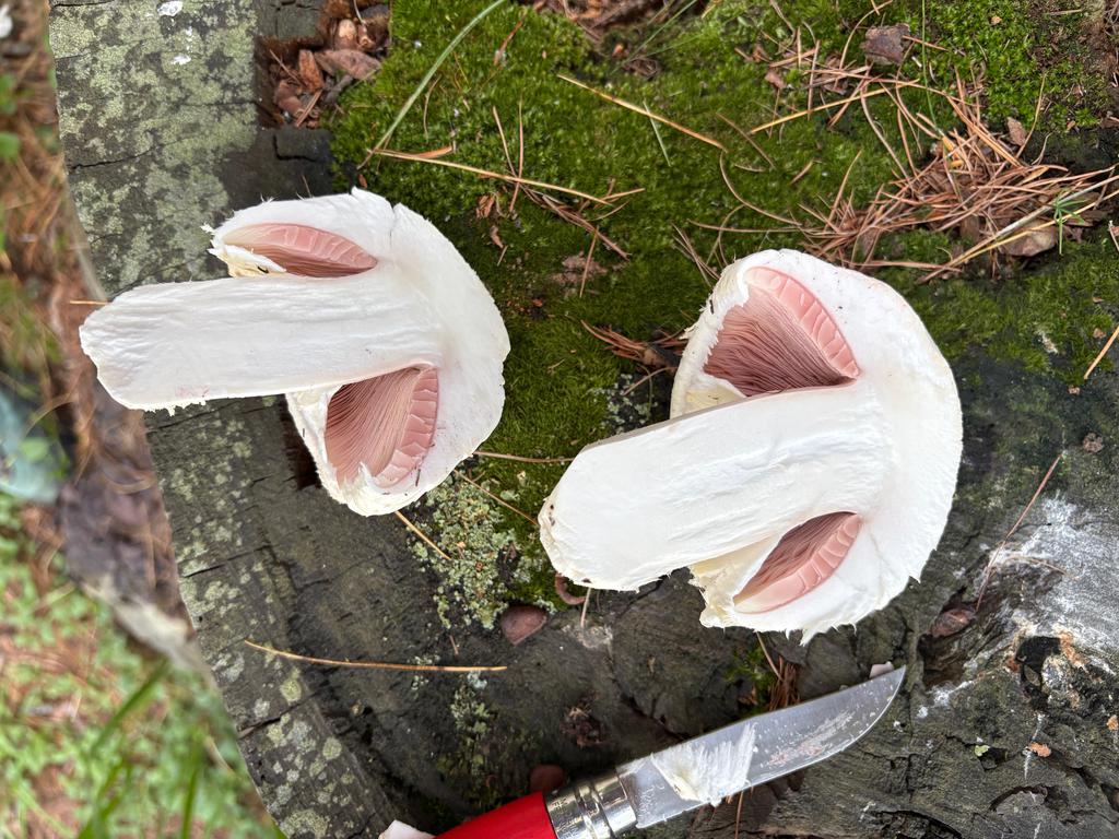 Sorry, ich hatte eigentlich alles dazugeschrieben: Haben wir hier einen Champion gefunden? Stielbasis ist leider abgebrochen. Riecht angenehm pilzig. Gefunden in der Nähe einer Kiefer auf einer Wiese. Danke