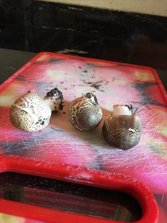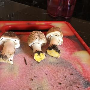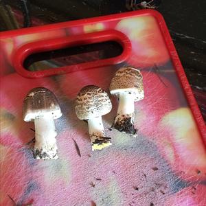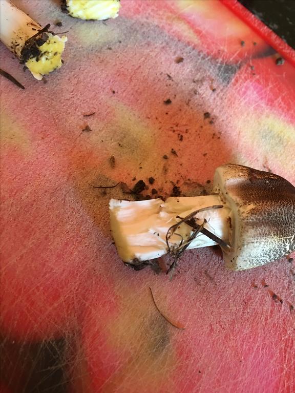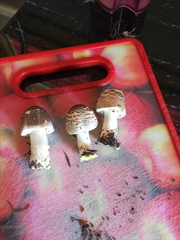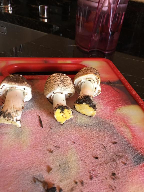 Perlhuhn-Champignon, Agaricus praeclaresquamosus. Gehört zur xanthoderma-Gruppe!