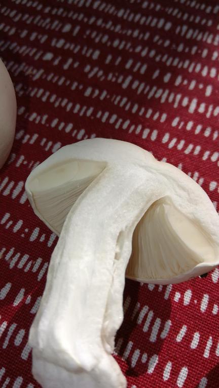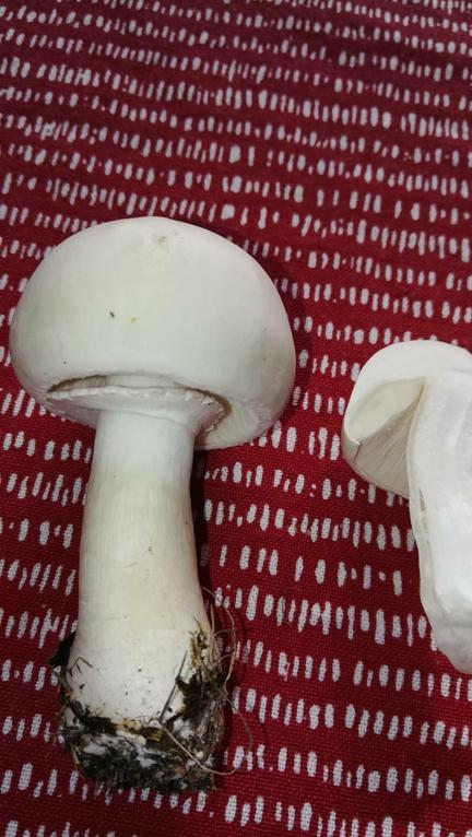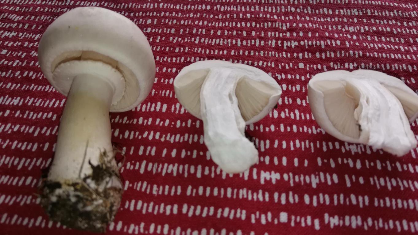 mit dem grünen Knolli ist eher nicht zu verwechseln, eher mit weißen Knollenblätterpilz, das hier ist ein Egerlingsschirmling, die Stielbasis ist hier eher keulig nicht knollig außerdem fehlt die Volva, der Ring ist auch nicht typisch Knollenblätterpilz, ein weiteres schönes Merkmal ist der schmale hohle Bereich der im Stielquerschnitt zu sehen ist