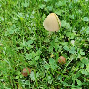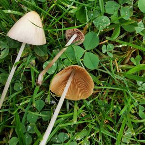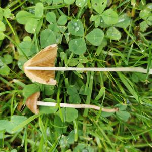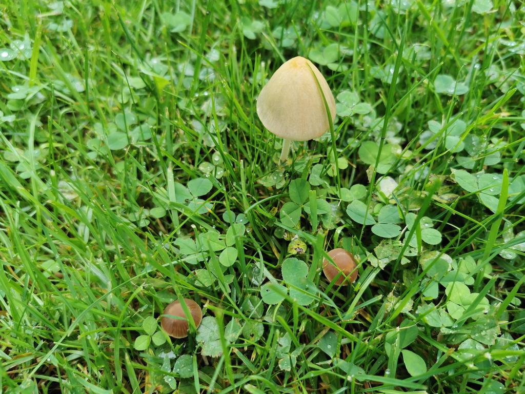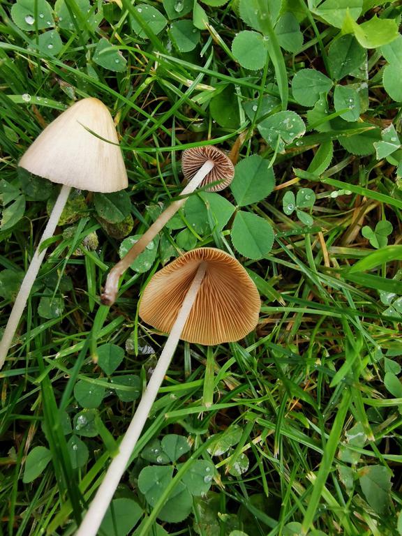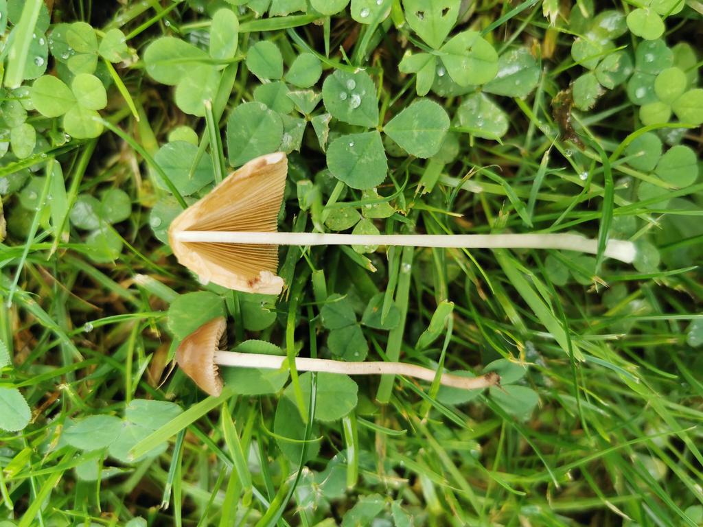Das sind zwei verschiedene Pilze Einer ev einer der Gattung panaeolus und der andere der Gattung conocybe