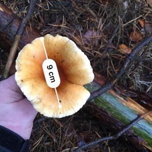 Ja die können so groß werden ,ich hatte dieses Jahr Exemplare die hatten 12 cm Hutdurchmesser . Die gab es bei uns dieses Jahr in Massen , trotz der Trockenheit und die stark gegabelten Lamellen sind typisch 😉