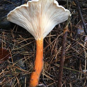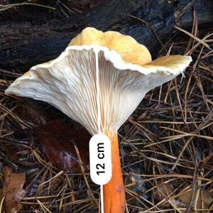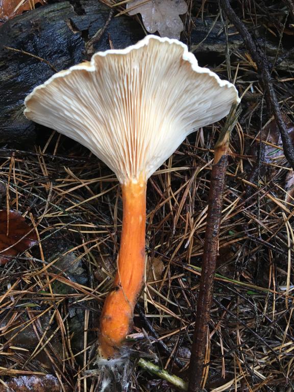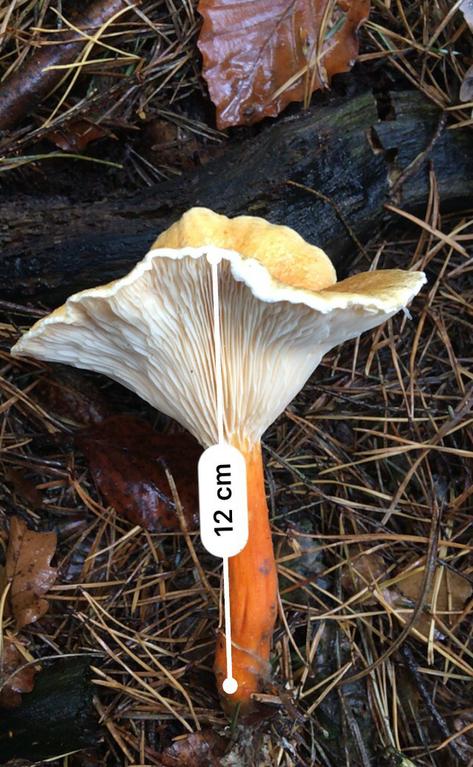 sehr helle Lamellen, aber ganz klar gegabelt ohne Zwischenlamellen, H.aurantiaca wäre auch mein Kandidat
