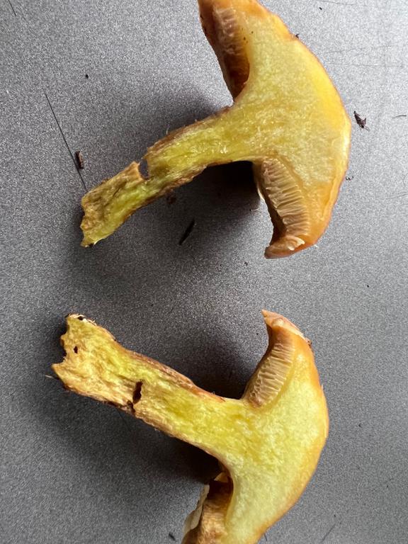 Sicher ein Goldröhrling. Der Kuhröhrling hat untermischte Röhren= kleine in großen eingesenkt.