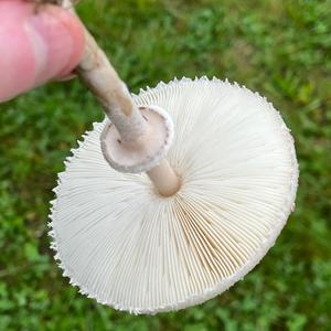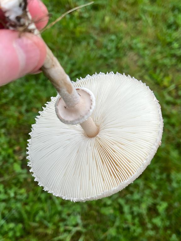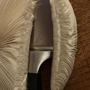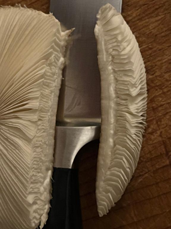 Spore print whitish, not green. Flesh did not discolor when cut, stayed white.