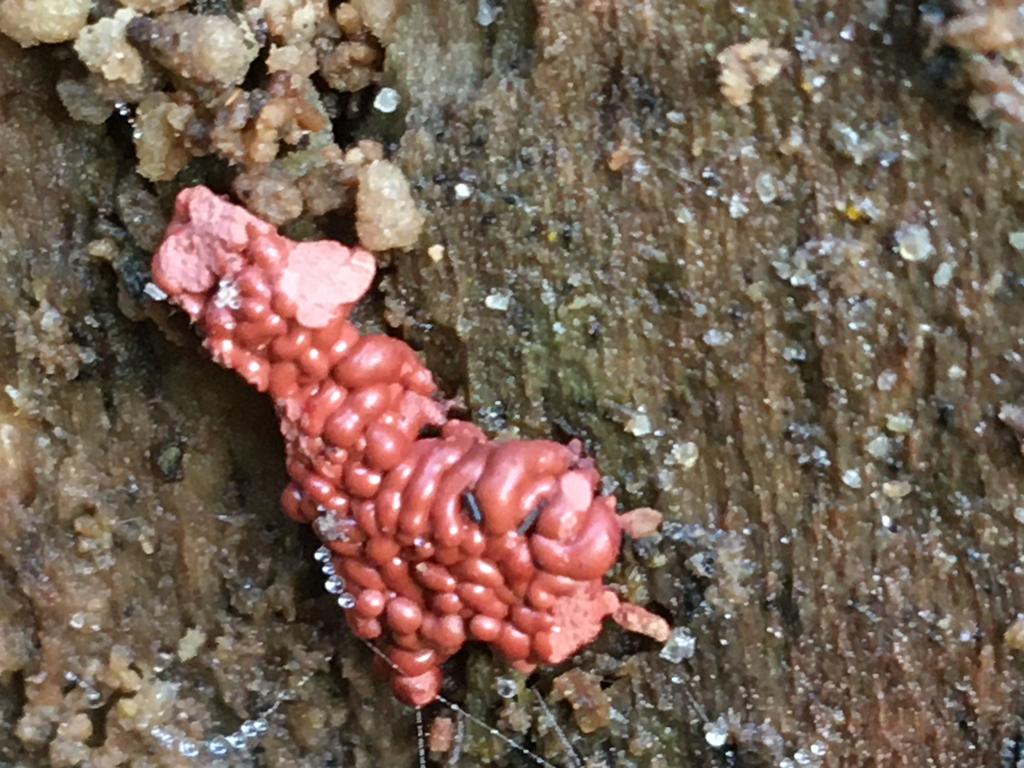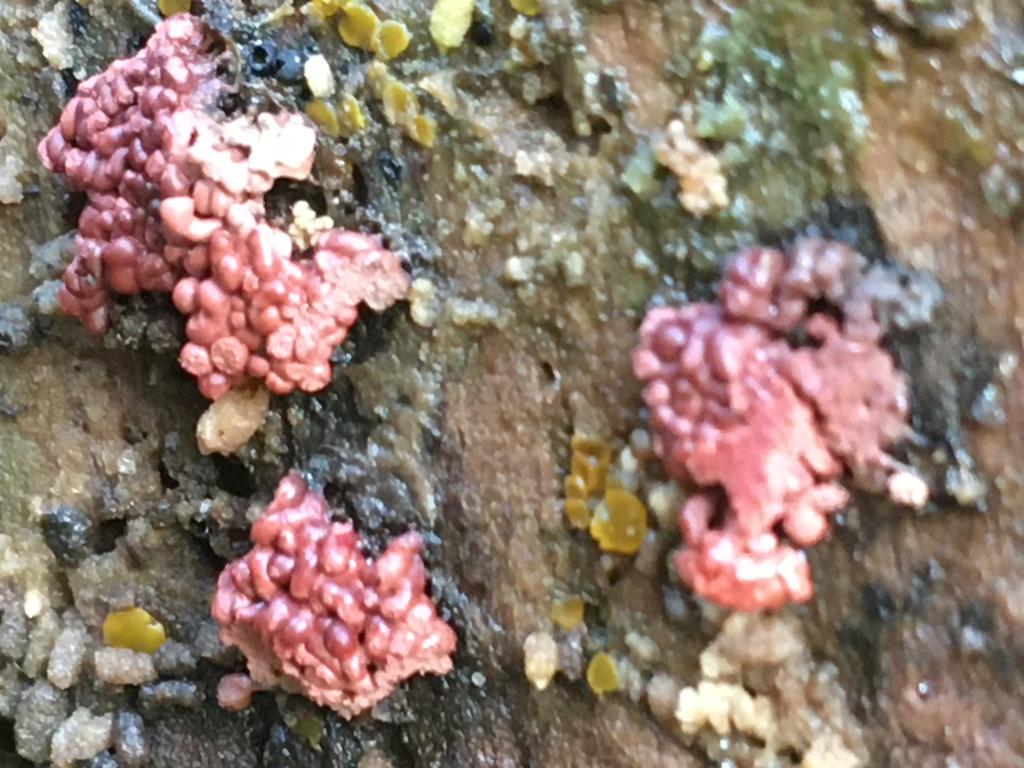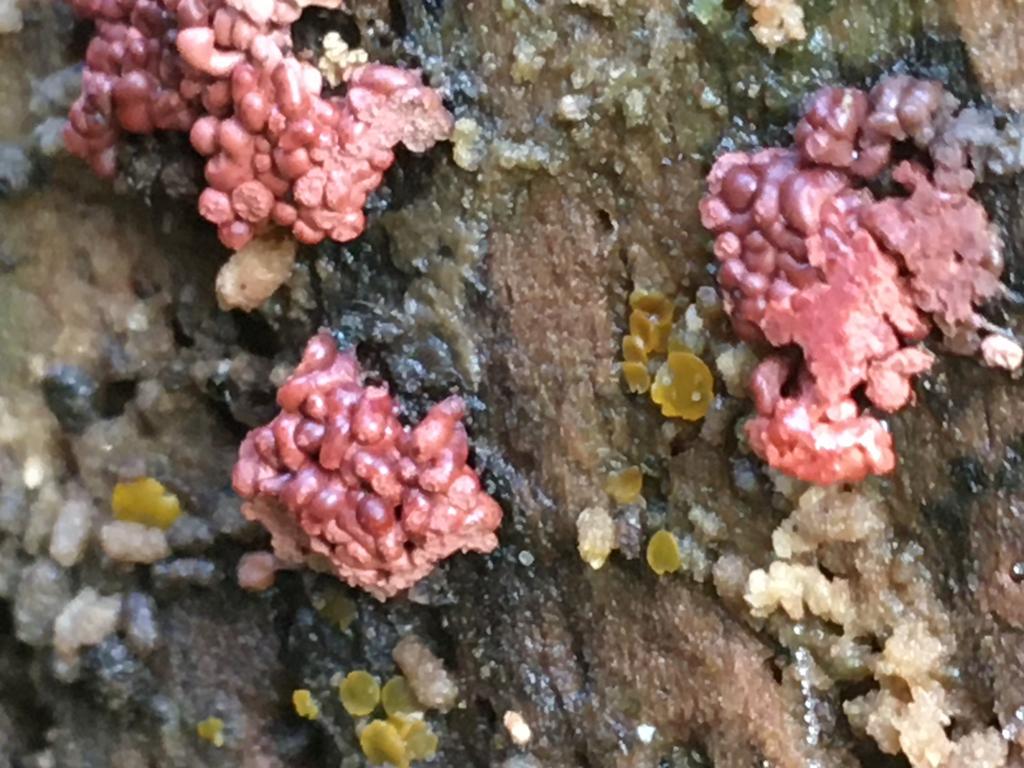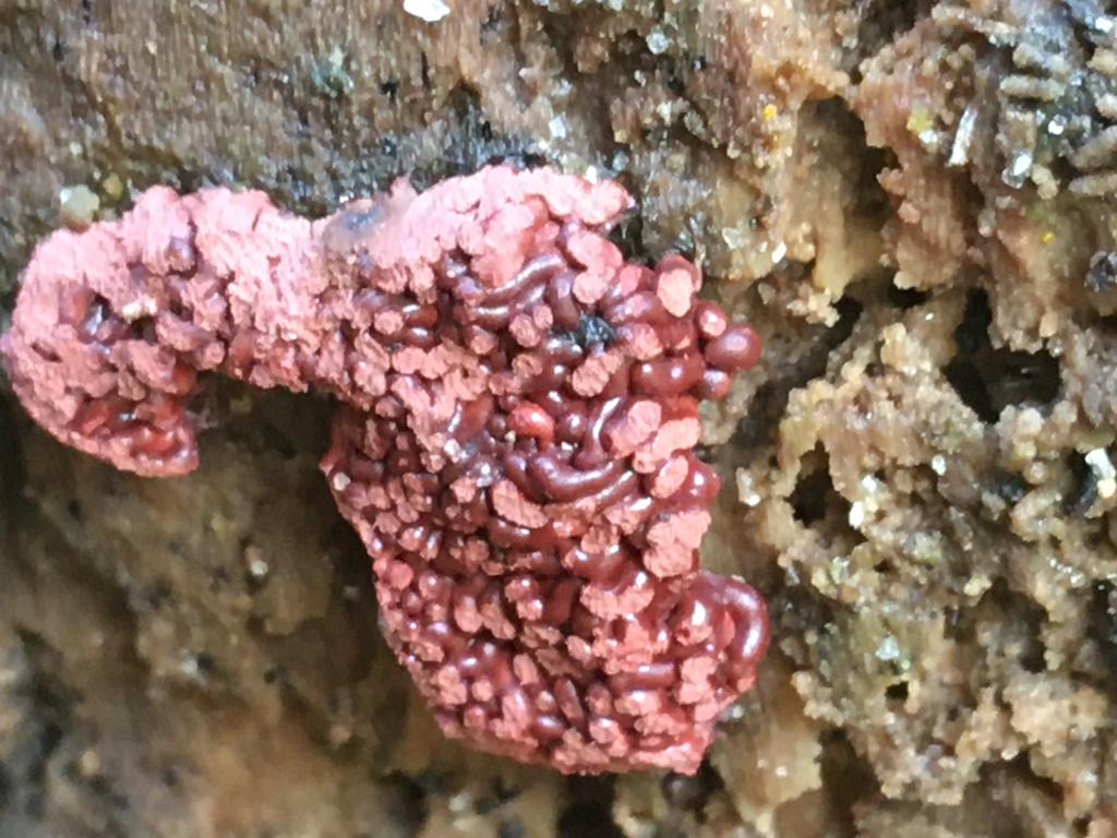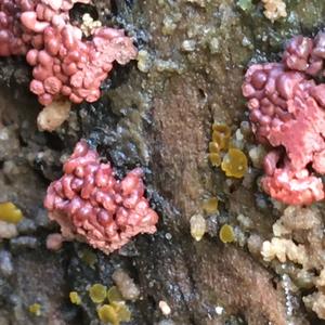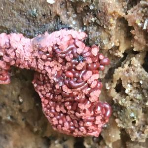 Könnte auch ein Schleimpilz werden. Bitte später noch einmal posten. Ascocoryne (Nebenfruchtform) sieht etwas anders aus.