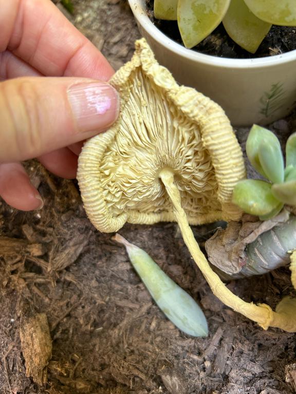 Gelber Faltenschirmling, Leococoprinus birnbaumii. „Coprinus birnbaumii“ gibt es nicht!!