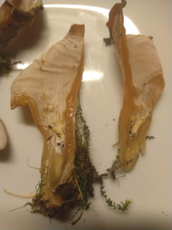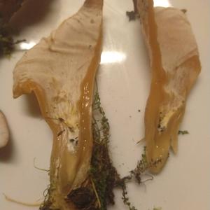 Der Pilz ist völlig gelatinös. Kann demnach weder Otidea noch Peziza sein: Rötlicher Gallerttrichter, Tremiscus helvelloides. Jedoch entfärbt!