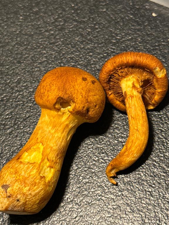 Gymnopilus sp. Maybe G. ventricosus or G. junonius. I don’t know this genus well.