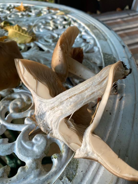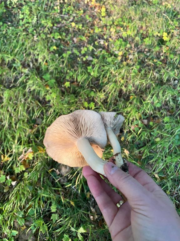 Ist der Hut Knorpelig zäh, könnte es lyophyllum decastes sein? Ist der Hut brüchig und die Lamellen haben einen Rosa stich, tippe ich auf entoloma spec.