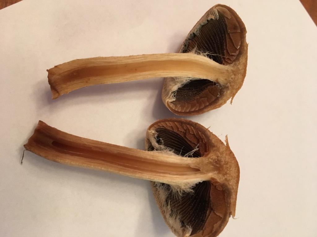 Diese Pilze wachsen bei uns auf dem Rasen. Vom äußeren würde ich auf Champignon tippen. Nach dem aufschneiden verströmt der Pilz auch extremen Champignon Geruch. Dem Schnittbild nach ist es aber eher keiner.