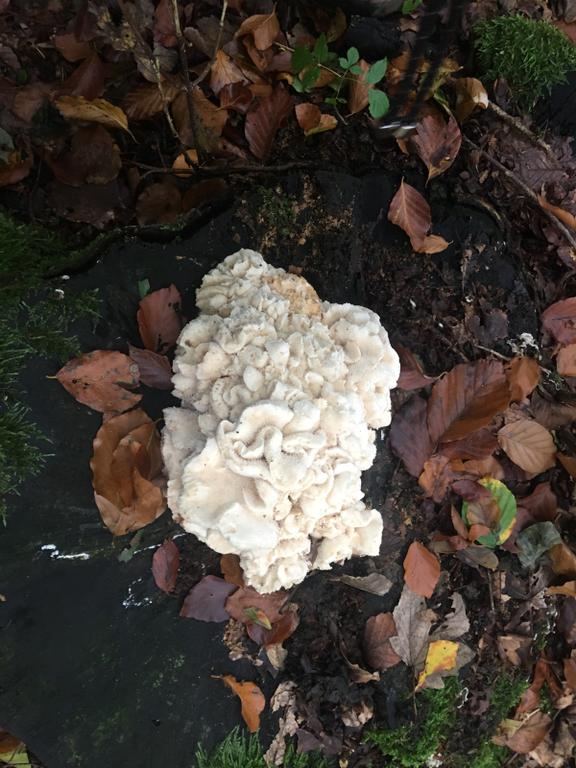 Das dürfte ein Dorniger Stachelbart, Creolophus cirrhatus sein. Ist noch sehr jung. Bei dieser Art ist die Oberseite ebenfalls stachelig!