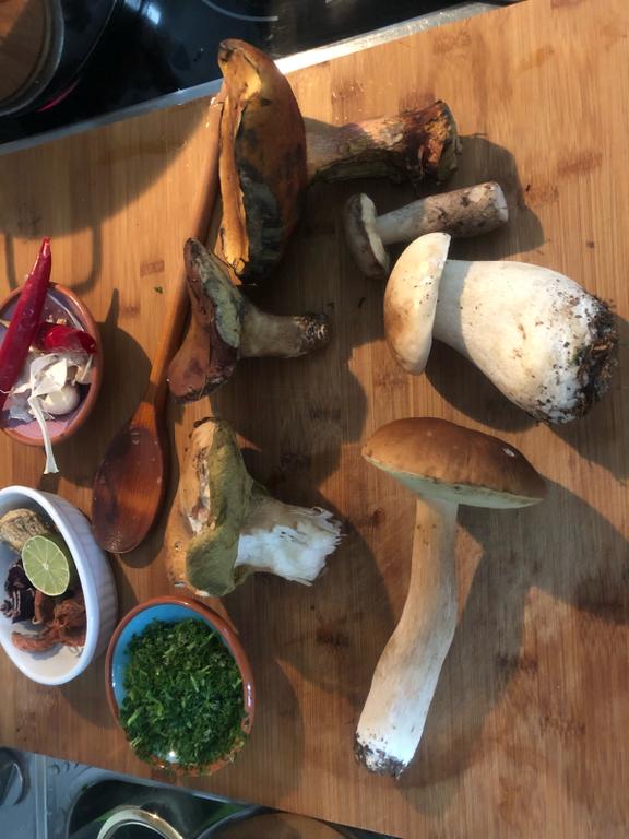 Steinpilz, Hexe , Marone und vielleicht ein Birkenpilz. Bitte beim nächsten mal immer nur eine Art posten