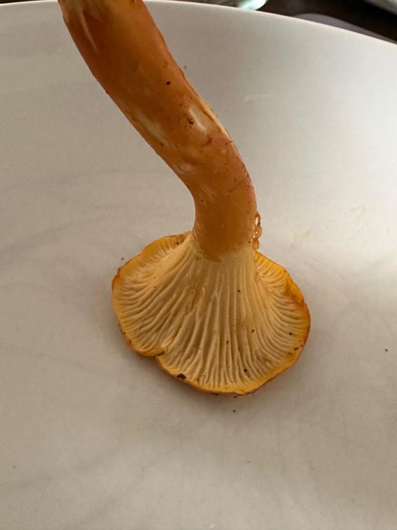 Dem Falschen Pfifferling können echte Pfifferlinge wie der Echte Pfifferling und insbesondere der mehr orange getönte Samtige Pfifferling ähnlich sehen. Sie unterscheiden sich an erster Stelle durch das Hymenophor. Pfifferlinge haben Leisten statt Lamellen. Leisten gleichen Adern, die genauso breit sind wie hoch, Lamellen dünnen Buchseiten; außerdem stehen Lamellen einzeln, während die Leisten eigentlich hervorstehende Runzeln in der zusammenhängenden Fruchtschicht sind. Pfifferlinge haben außerdem ein festeres, brüchiges Fleisch, das mirabellen- bzw. aprikosenartig riecht und beim Kauen schnell pfeffrig schmeckt. Somit gehört dein Fund zu den echten Zachlingen (so sagen wir hier in Tirol dazu 🙂)