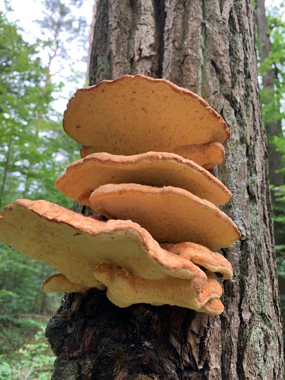 Da es hier um den Pilz geht: es sind Schweferporlinge, Laetiporus sulphureus.