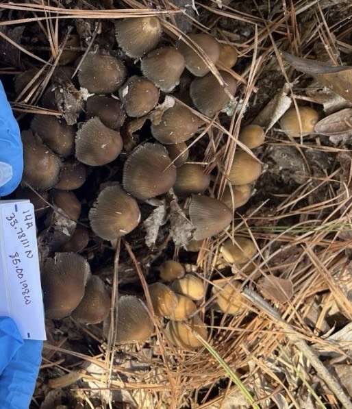 Looks like the common Mica Cap: Coprinellus micaceus