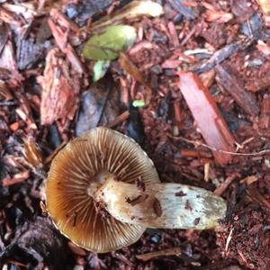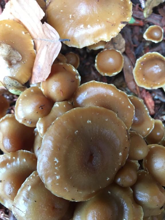 It is not the Kuehneromyces mutabilis , probably Psathyrella spec.