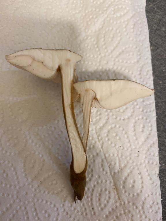 würde einen Wurzelrübling vermuten ggf. Xerula melanotricha
