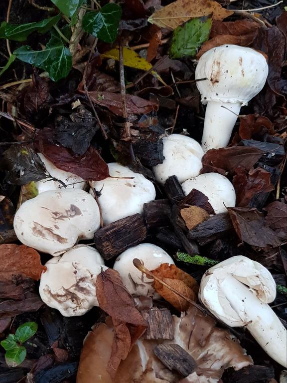Die Pilze wurden schon einmal gepostet! An den hellen Lamellen sieht man, dass es kein Champignon ist. Möglicherweise Leucoagaricus spec. Mehr ist nicht zu sagen!