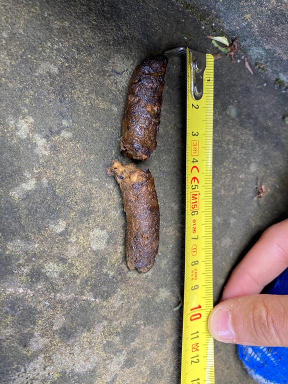 Hinterlässt nachts regelmäßig von ca. Mai bis November seinen Haufen auf unserer Treppe im Freien. Geruchsneutral.