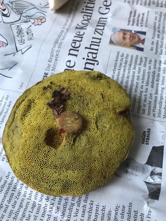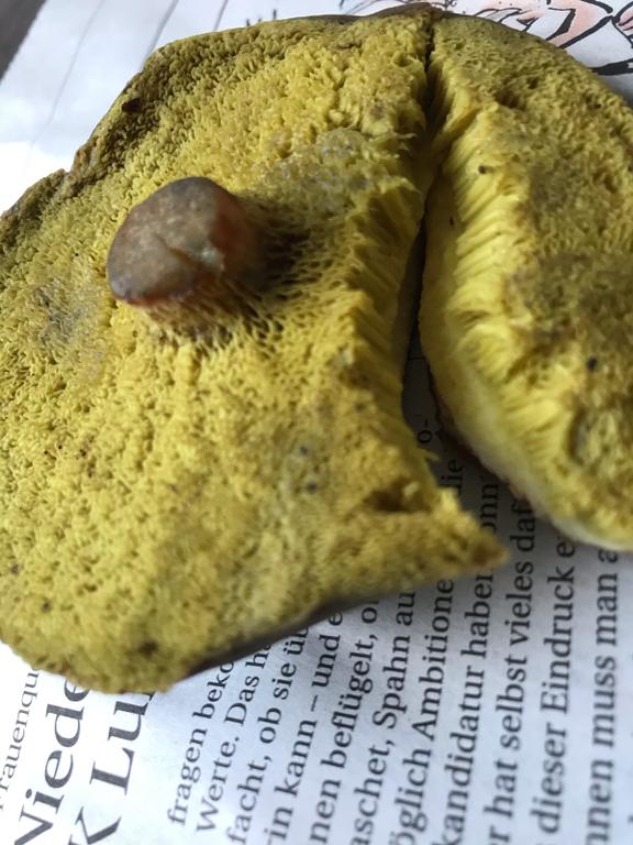Wahrscheinlich Rotfußröhrling, den Stiel sollte man zur Bestimmung immer dran lassen und vollständig 😉
