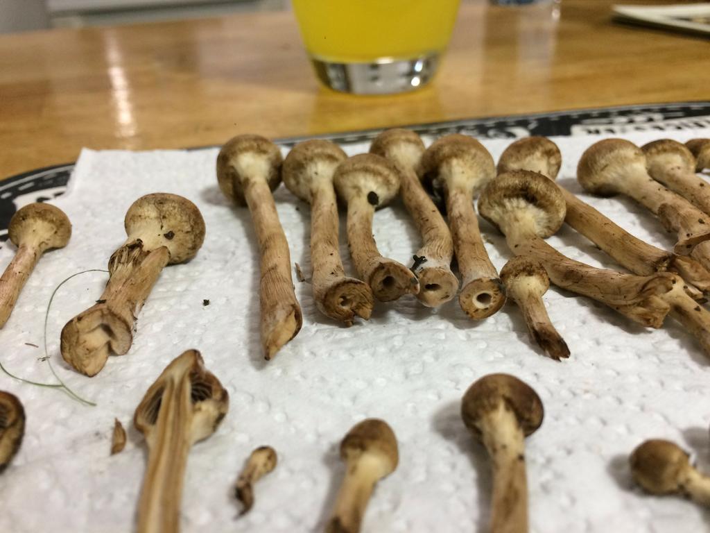 Too young specimens. Next time let them grow for some days and send a better picture! Probably Tränender Saumpilz, Lacrymaria lacrymabunda.