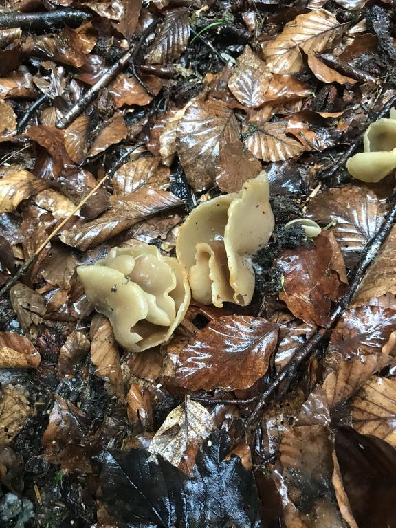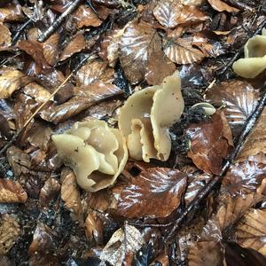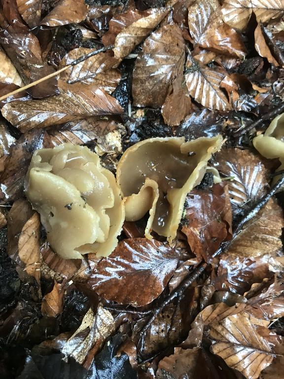 Peziza spec., mehr ist nicht zu sagen. Der Kronenbecherling ist es keinesfalls.