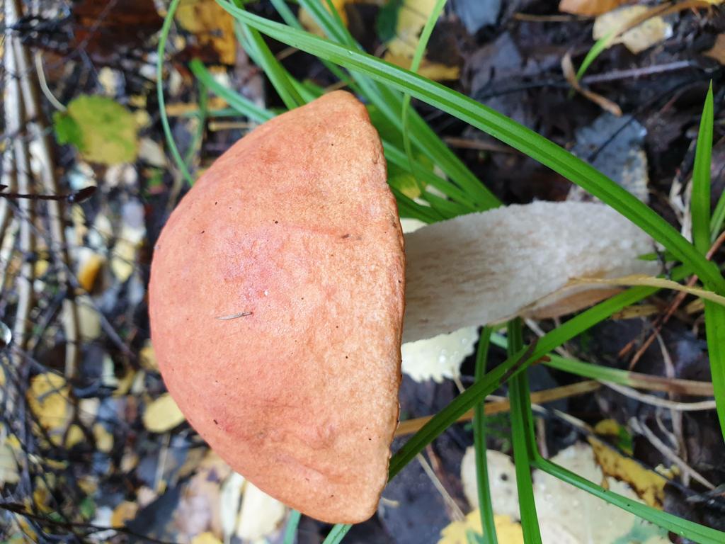 Espenrotkappe, Leccinum rufum!! Die Blätter der Zitterpappel sind noch zu sehen!