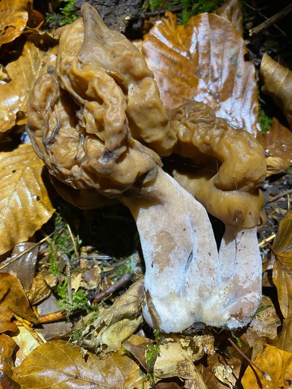 Das ist eine Bischofsmütze, Gyromitra infula, wenn auch alt. Bei Grubenlorchel und Herbstlorchel ist der Stiel grob längsriefig!