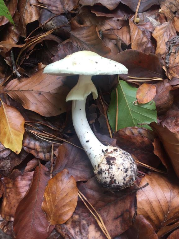 vermutlich ein gelber Knollenblätterpilz, aber Bild von oben wäre schon gut gewesen