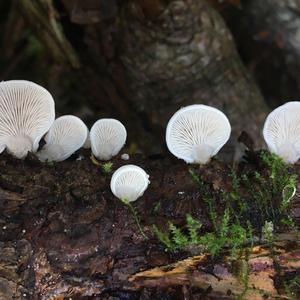 Sieht aus wie der Milde Zwergknäueling, Panellus mitis! Übrigens: Die vermeintlicht Giftigkeit von Pleurocybella porrigens bezieht sich auf japanische Aufsammlungen. Der Punkt ist wohl umstritten. Deshalb dennoch keine Essversuche unternehmen!