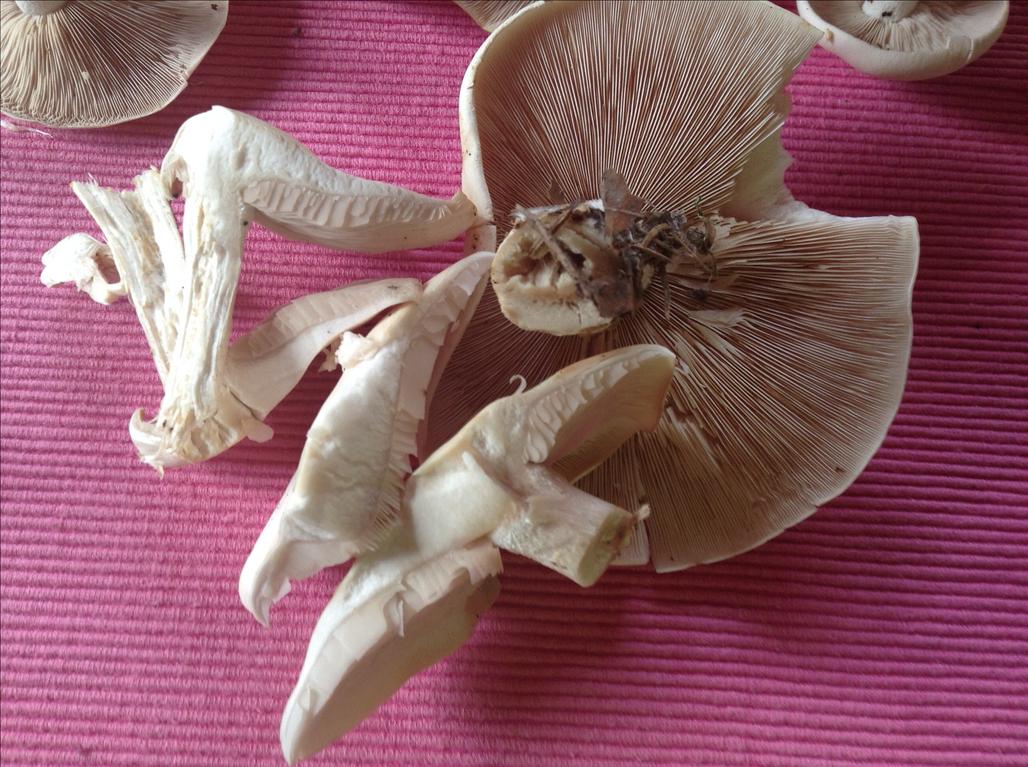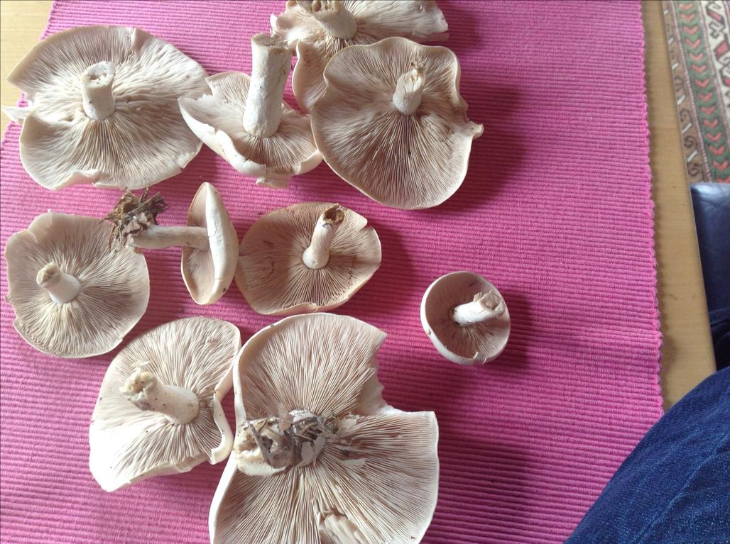 Der Nebelgraue Trichterling ist es keinesfalls, da das Sporenpulver (siehe einige Hutoberflächen) fleischbräunlich ist! Wenn der Geruch stimmt (nach getrockneter Veilchenwurzel), dann ist es Lepista irina!