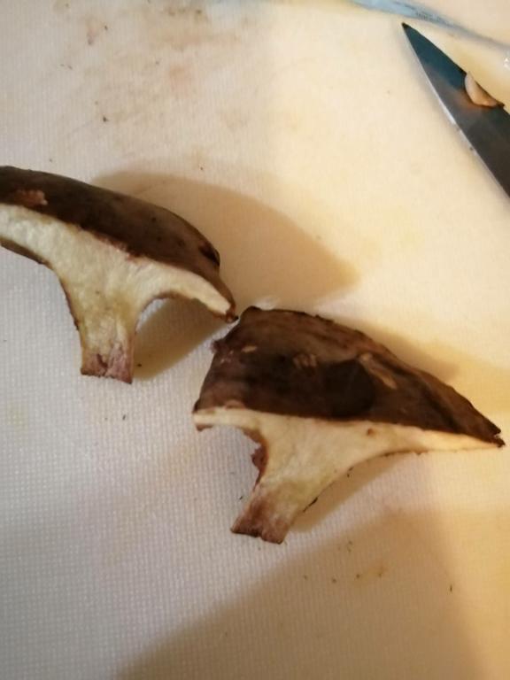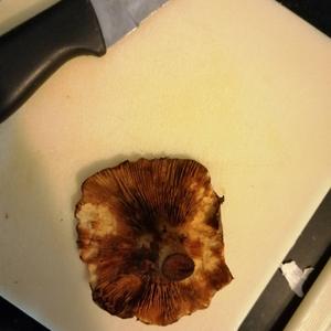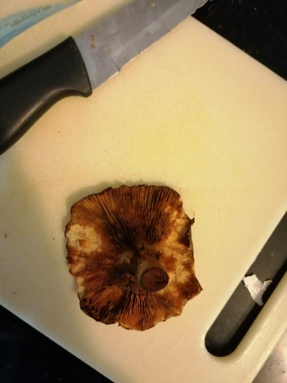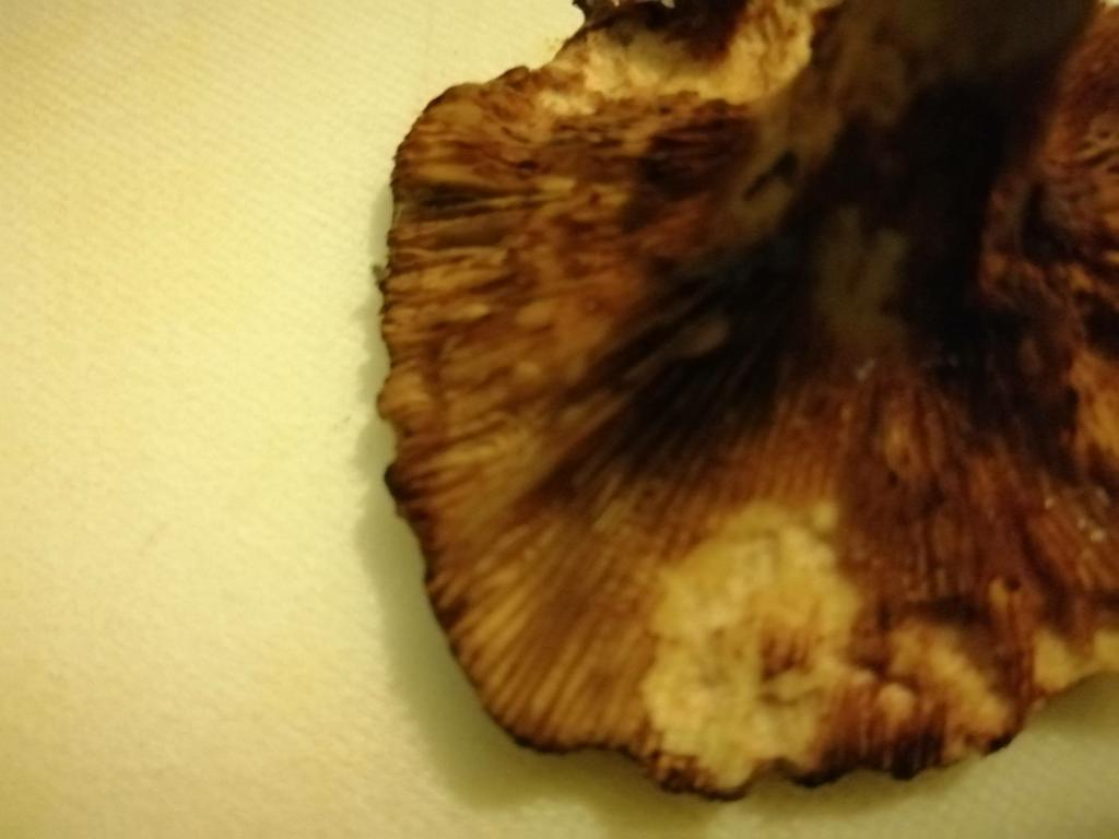 Kahler Krempling , an verletzten Stellen färbt er sich rotbraun kann man am Stiel sehen