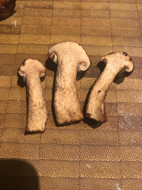 Nach der Stielverfärbung sind es junge Kahle Kremplinge.