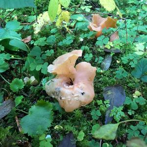 Untypisch. Vergl. aber Rötlicher Gallerttrichter, Tremiscus helvelloides.