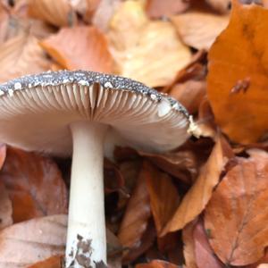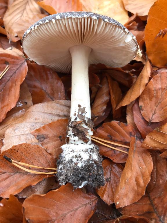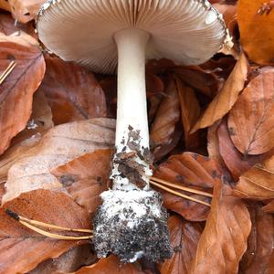 Leider fehlt ihm der Ring aber die Velumenreste sind rein weiß zudem ist er mir zu dunkel für den Perlpilz. Die Knolle sieht auch nicht nach Perlpilz aus.