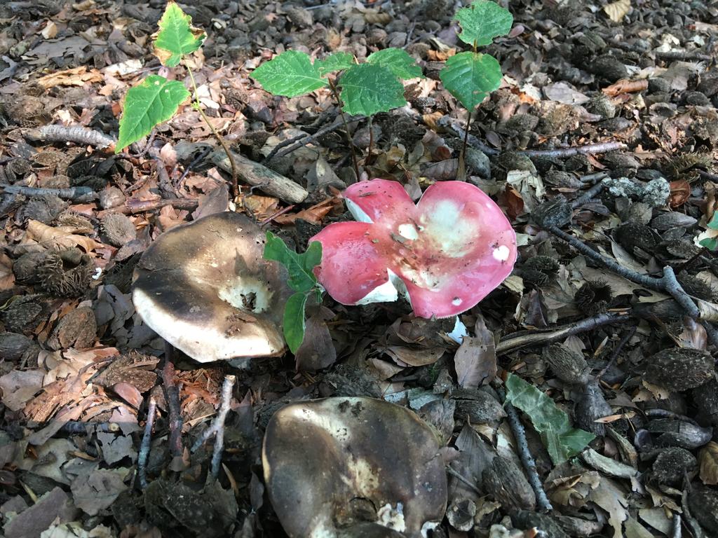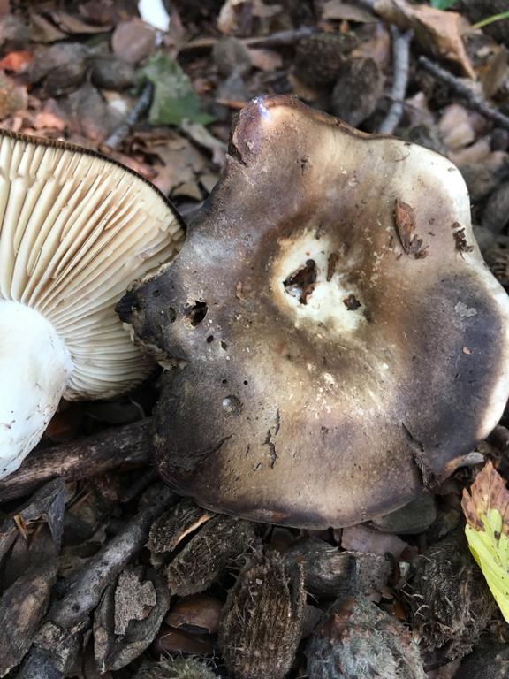 Die dunklen sind Dickblättrige Schwärztäublinge, Russula adusta. Lamellen entfernt, berührt leicht röteng.