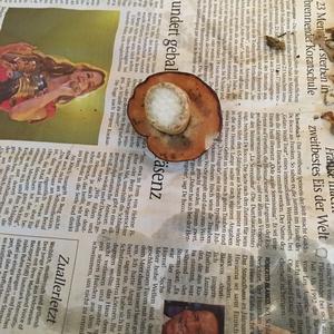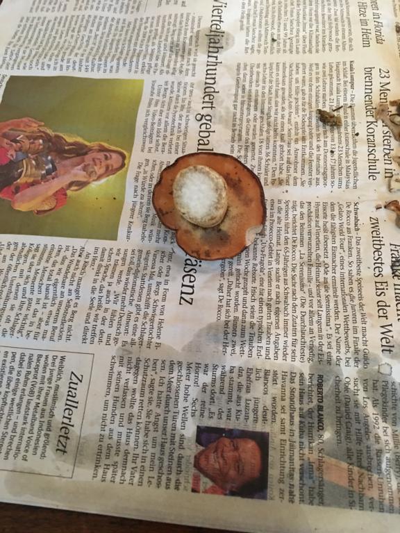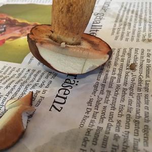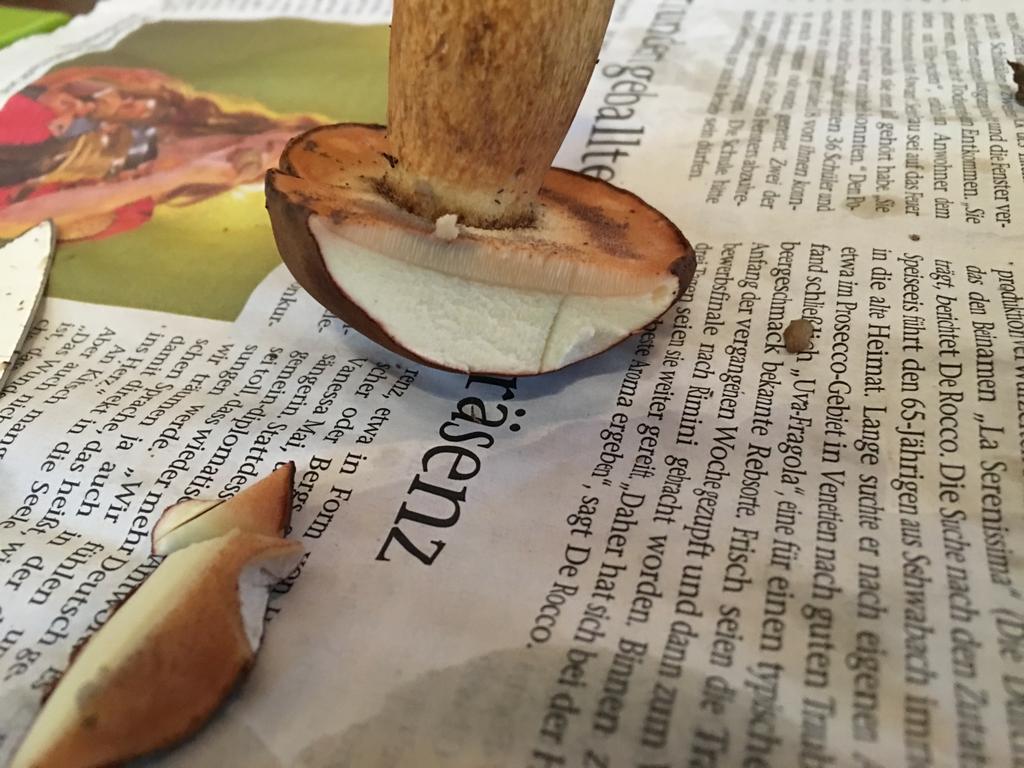 Als erstes dachte ich an eine Marone, dann an eine Hexe aber der stiel sagt wieder Marone. Nun die Frage: warum ist des Futter rötlich??? Lg Denis