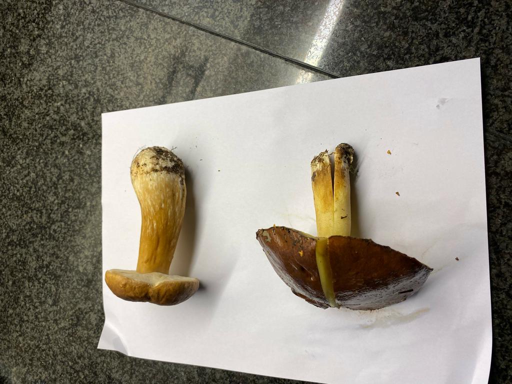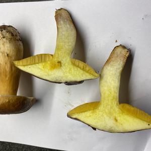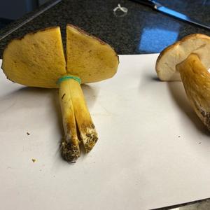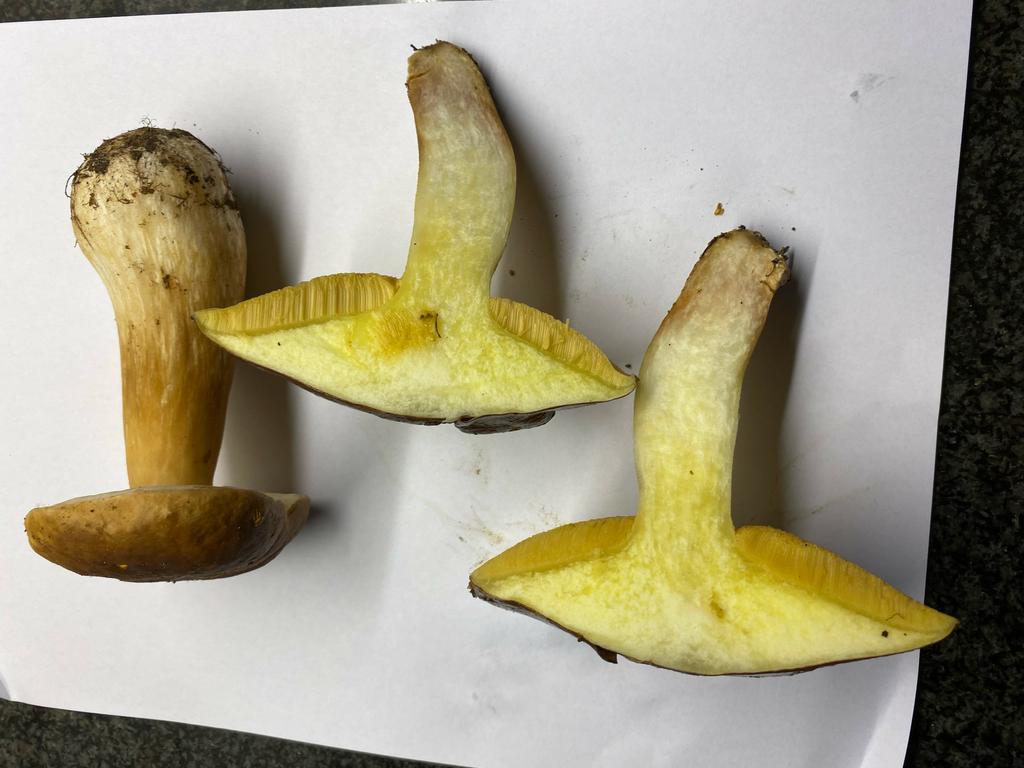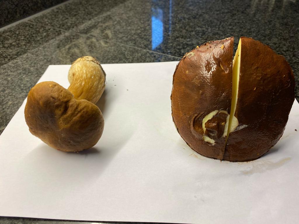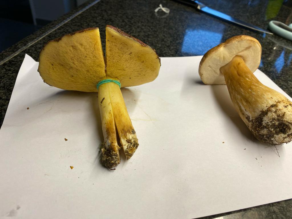 zwei verschiedene, der im Querschnitt ist ein Suillus, vermutlich Körnchenröhrling oder Ringloser Butterpilz, der Andere ist ein Steinpilz