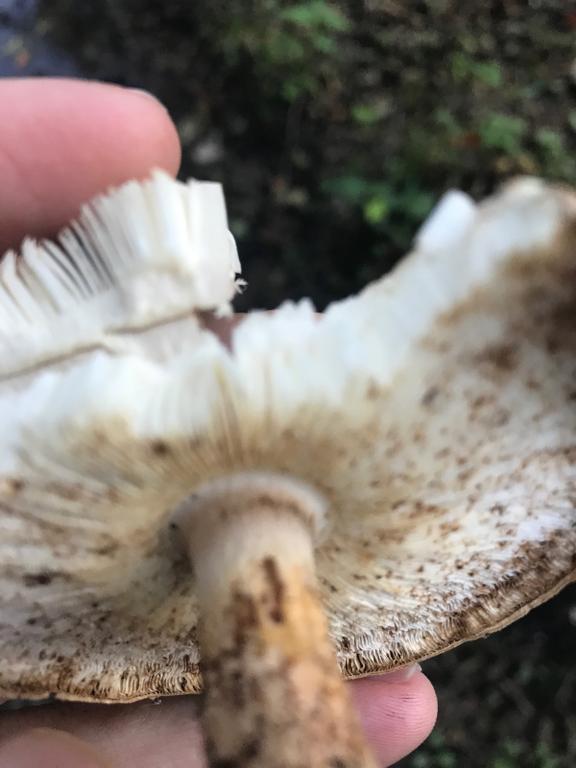 Wir müssen wissen, aus welchem Land der Pilz stammt! Er hat freie, weiße Lamellen und gehört daher zu den Schirmlingsverwandten! "Phototasche" ist unter Pilzkennern unbekannt!