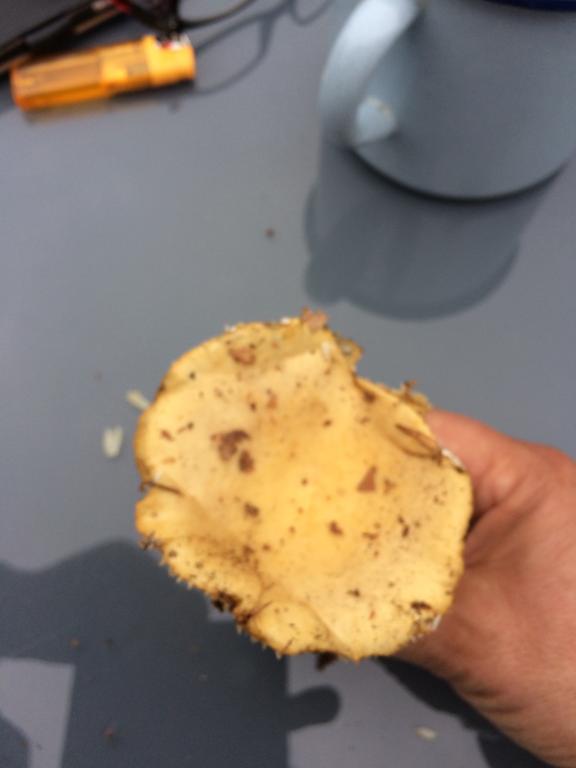 Das Grauwerden kommt ja nicht sofort nach dem Schnitt. Aber man hat uns ja wieder verschwiegen, ob der Pilz deutlich scharf schmeckt oder eher mild oder nur schärflich. Daher könnten immer noch beide Arten infrage kommen. Für mich ist es eher der Ockertäubling. Viele Grüße.
