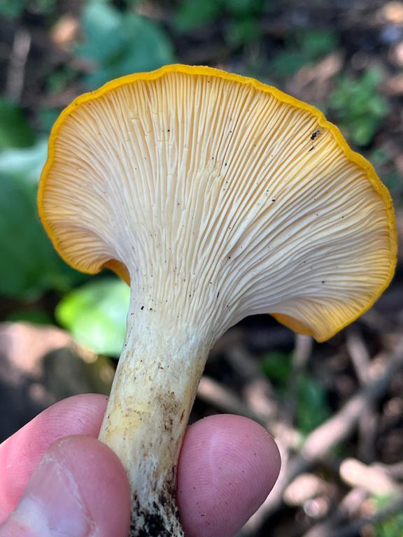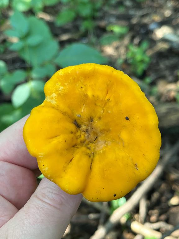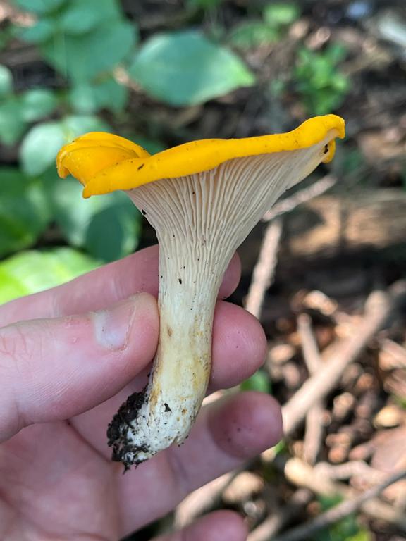 Seems like some kind of Chantarelle, but could it be a false chantarelle (hygrophoropsis aurantiatica) or other lookalike?