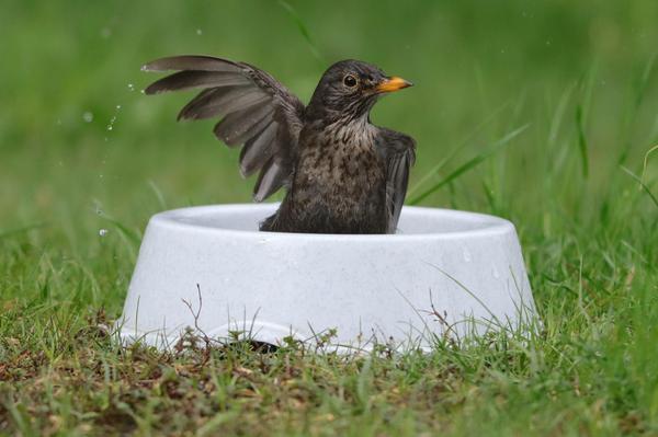 😧😃Trop beau ce petit merle qui se baigne